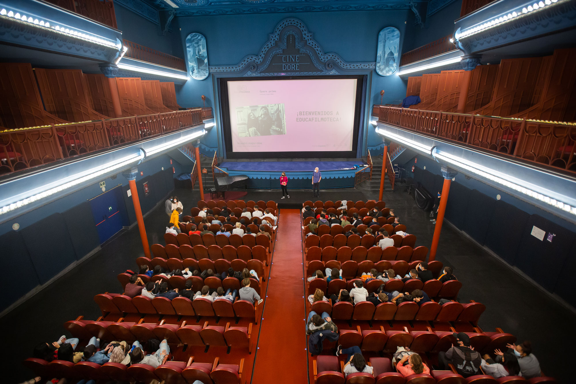 Mediante esta iniciativa, la Filmoteca Española abre sus puertas a docentes y alumnos para fomentar entre los jóvenes la apreciación de nuestro patrimonio cinematográfico a través de un recorrido por distintos lenguajes y géneros. El programa de cine español de EducaFilmoteca está dirigido a centros educativos de toda España que imparten las etapas de Secundaria, Bachillerato y Formación Profesional y se desarrolla en dos modalidades, en sesiones presenciales en el Cine Doré y en sesiones online que facilitan la participación del alumnado desde distintos puntos del territorio.
