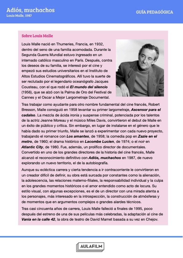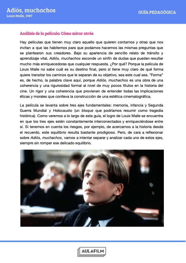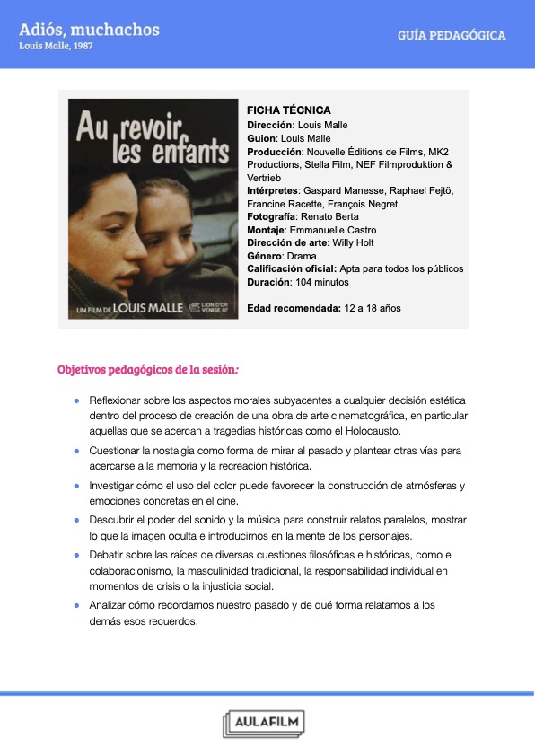 Sin que haya una sola escena de guerra, el film consigue capturar la esencia de la discriminación y persecución de los nazis así como el ambiente de violencia que se respiraba durante la Segunda Guerra Mundial. La historia está inspirada en los hechos reales que vivió el propio director Louis Malle cuando estudiaba de niño en un internado católico cerca de Fontainebleau.