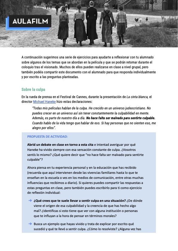 Detrás de ese aparente orden establecido, se ocultan tragedias clandestinas que, como reflexiona el narrador, podrían ser el germen de las posteriores guerras y el ascenso del Nazismo. La interpretación queda abierta para el espectador, pero el retrato de esta aldea es, según el propio director, “un microcosmos que representa el macrocosmos de la sociedad de manera muy eficaz".