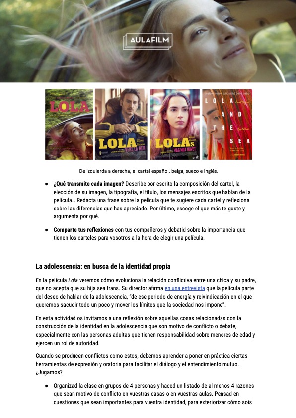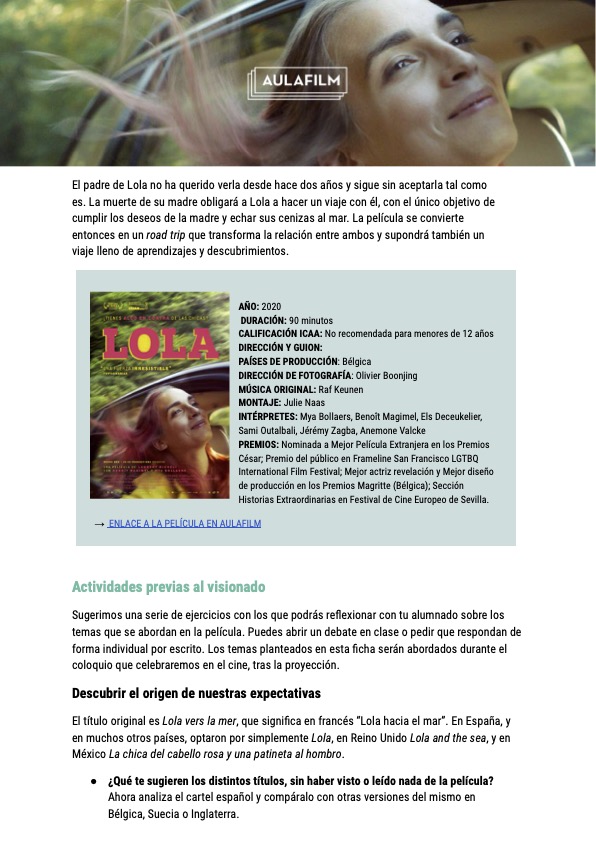 Caracterizada por una cuidada estética teen y una banda sonora ecléctica que compensa los momentos dramáticos, Lola está narrada con la complejidad y madurez que requiere el tratamiento de temas como la identidad y la sexualidad, las relaciones paterno-filiales o los cambios propios de la adolescencia y su búsqueda de identidad propia.