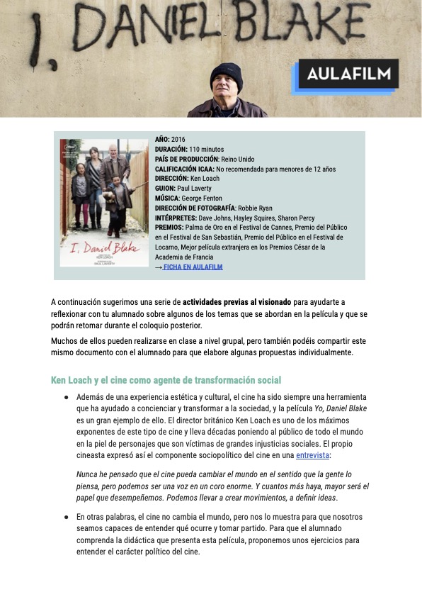 El reconocido cineasta británico Ken Loach vuelve a colaborar con su guionista de cabecera, Paul Laverty, en un drama social que apela a un mundo más justo y humano. Diez años después de El viento que agita la cebada (2006), consiguió su segunda Palma de Oro en el Festival de Cannes.
