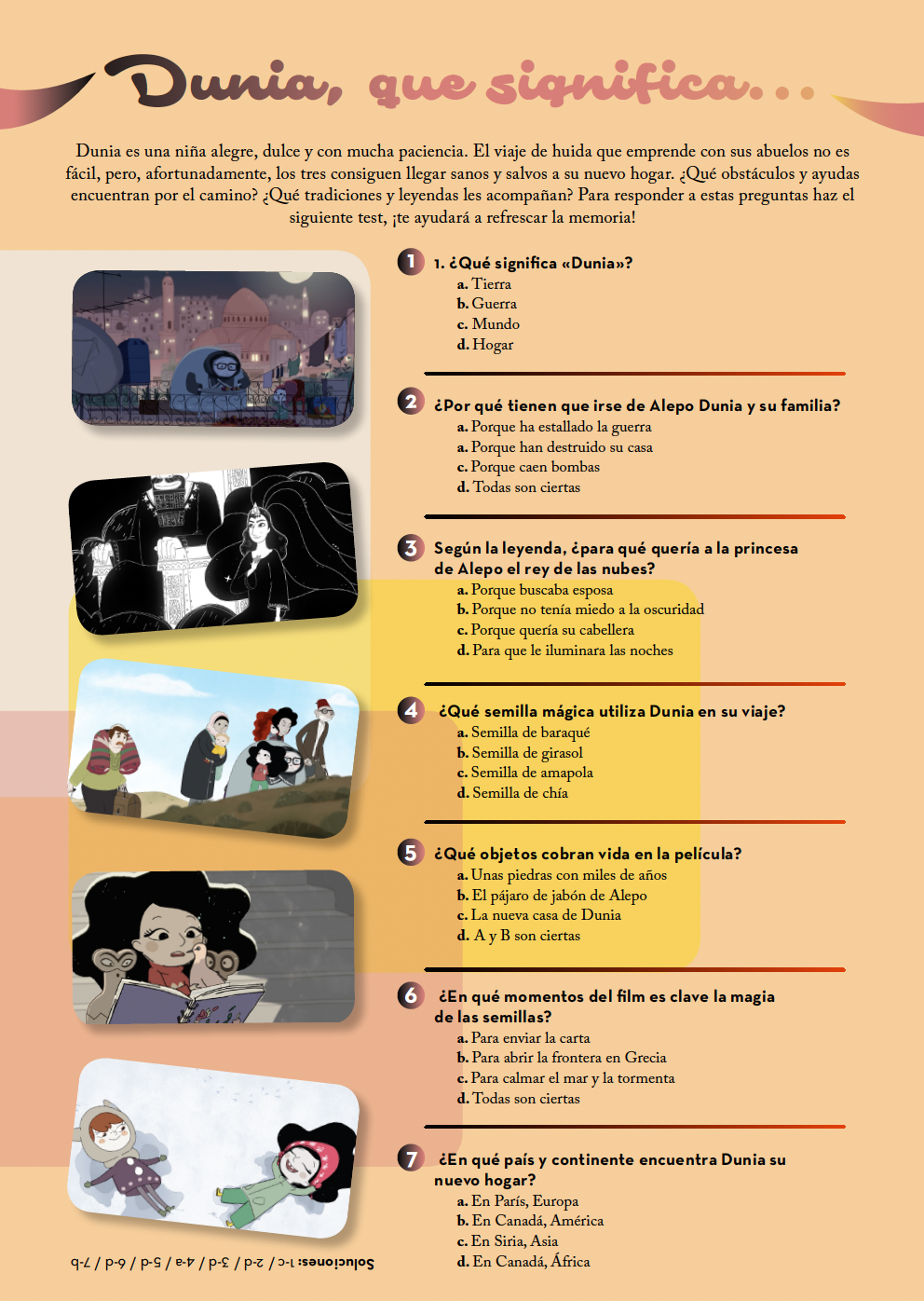 En este programa de cortometrajes tu alumnado conocerá a personajes de diferentes nacionalidades y con mucho en común: la imaginación, el coraje y la esperanza. A través de los protagonistas de Dunia y otros cuentos del mundo aprenderán el valor de la unión de culturas y la necesidad de acoger y respetar al otro.