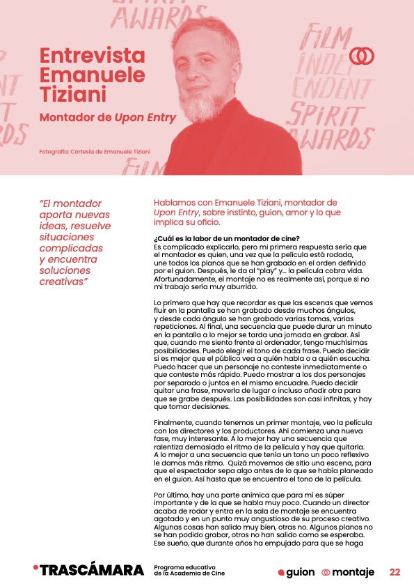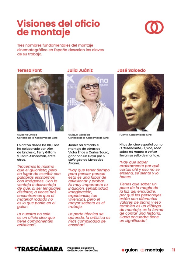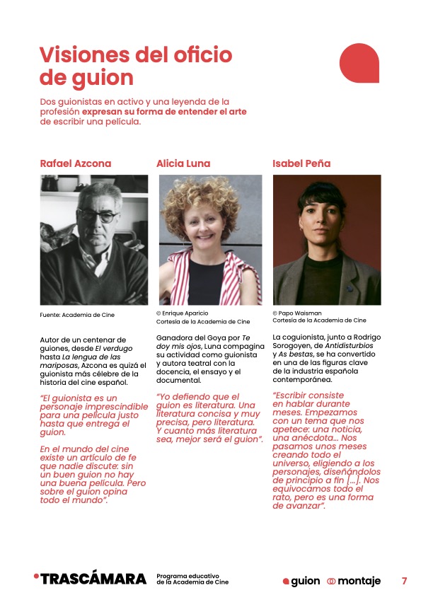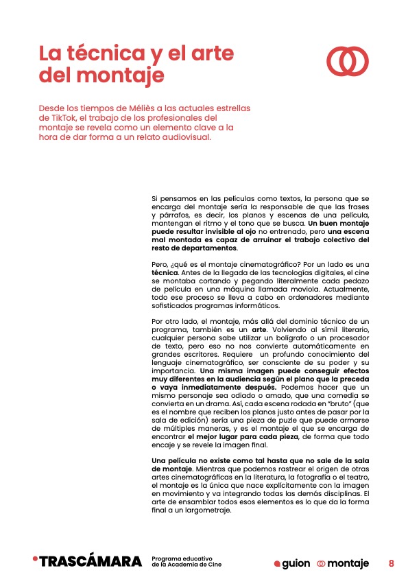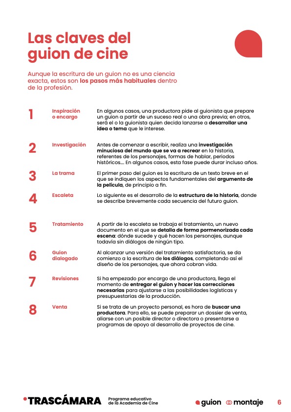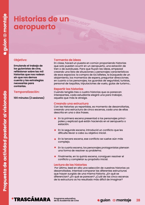 Es un material didáctico publicado por TRASCÁMARA, el Programa educativo de la Academia de Cine, desarrollado en conjunto con Aulafilm.