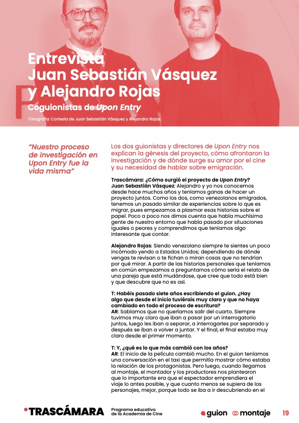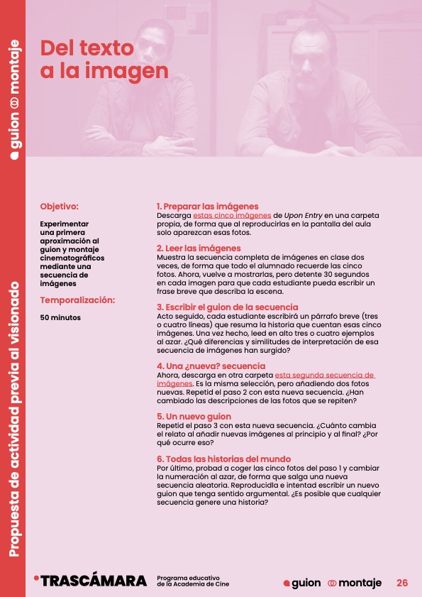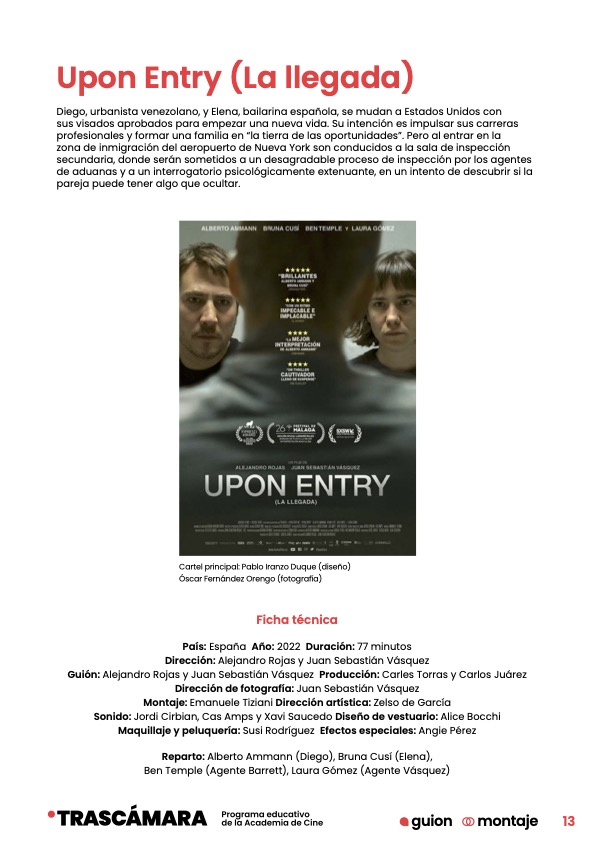 Guion y Montaje. Upon Entry - Guía pedagógica