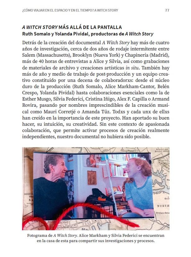Partiendo de un relato personal que se mezcla con el testimonio de la académica feminista italiana Silvia Federici y la interpretación de la artista española Esther Musgo, A Witch Story construye un recorrido documental en torno a la memoria y la necesidad de comprender las motivaciones políticas y sociales reales tras las grandes cazas de brujas en Europa y América para entender las formas actuales de violencia contra las mujeres.