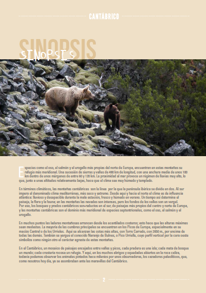 En el norte de la Península Ibérica una imponente cordillera de más de 400 Km. se levanta como una gran barrera paralela a la costa del mar que lleva su nombre, el Mar Cantábrico. En su otra vertiente, la cordillera Cantábrica se nos presenta repleta de cañones y apretados bosques continentales de hayas, robles y castaños. La influencia cálida del mar, ha determinado un clima con elevadas precipitaciones originando montes de exuberante vegetación. Es el lugar perfecto para esconder un gran número de animales y otras formas de vida que cohabitan aquí desde tiempos inmemoriales. Pero por encima de todo, es el territorio de una de las criaturas más formidable del hemisferio norte: el oso pardo cantábrico. Y es precisamente este fabuloso animal, uno de los que hemos escogido para conducir nuestra película.