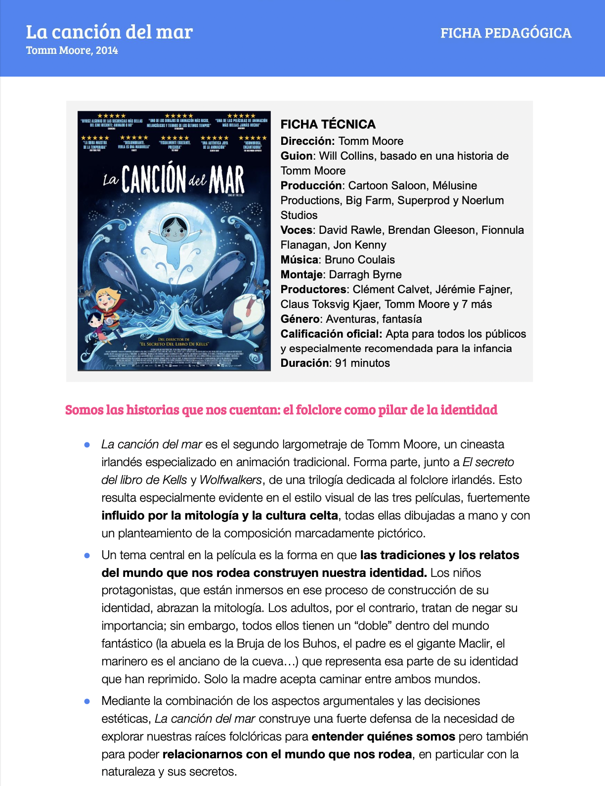 La canción del mar: ficha pedagógica