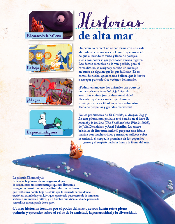 El programa de piezas animadas "El Caracol y la Ballena y otros cuentos del mar" invita a explorar el universo marítimo con una serie de actividades pedagógicas y lúdicas dirigidas a las etapas de Infantil y a los primeros cursos de Primaria.