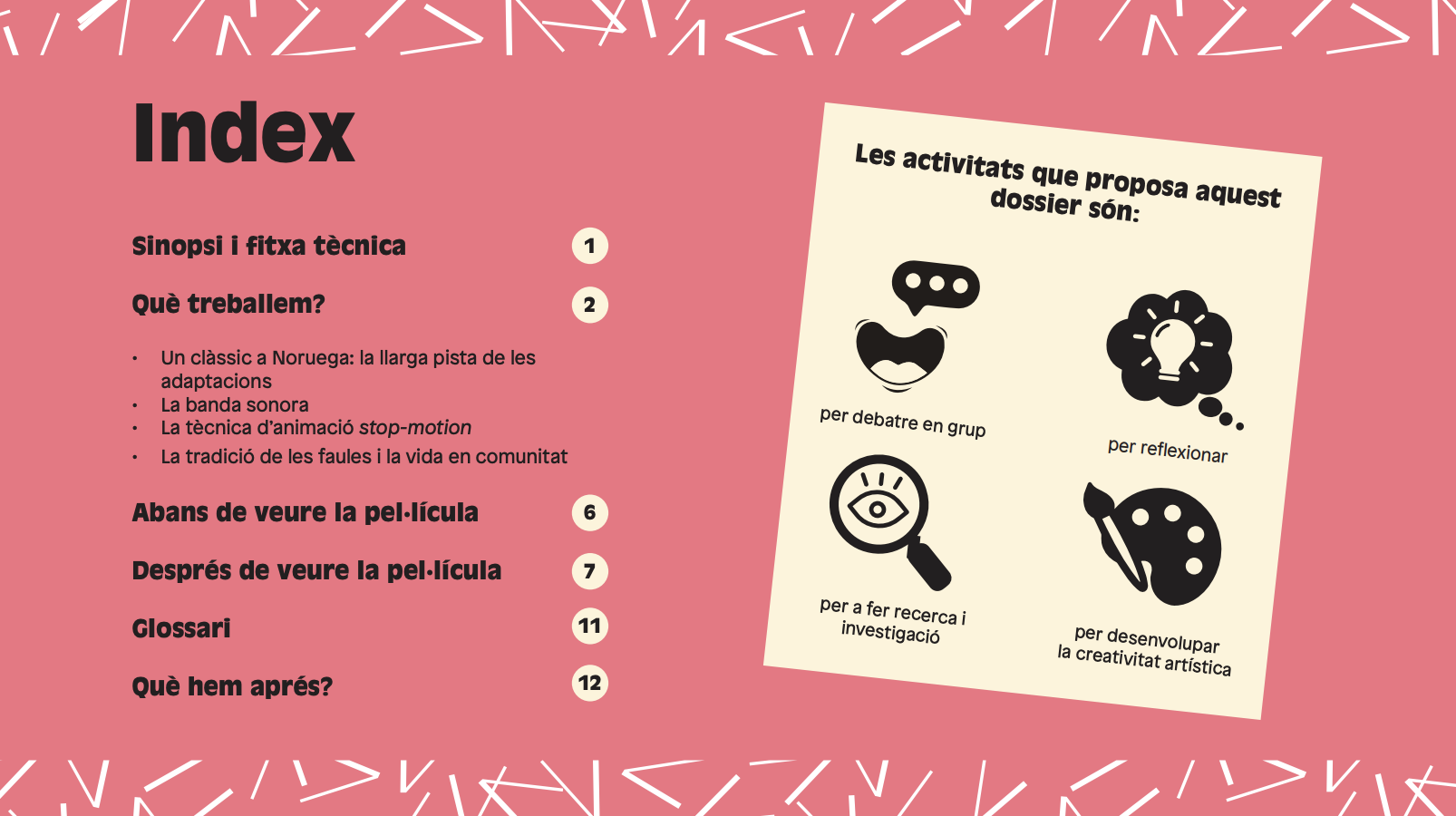 El dosier propone actividades previas y posteriores al visionado.