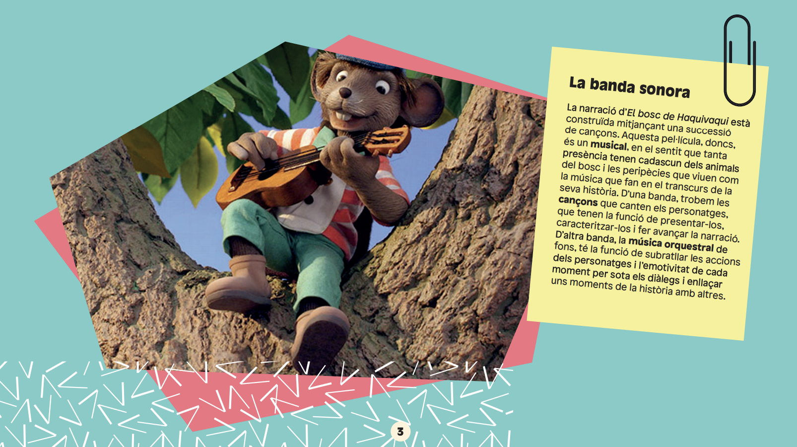 Este dosier dirigido a niños y niñas de Infantil y Primaria propone una serie de actividades para realizar en clase antes y después de ver El bosque de Haquivaqui, incluyendo ejercicios para debatir en grupo, para reflexionar, investigar y desarrollar la creatividad del alumnado.