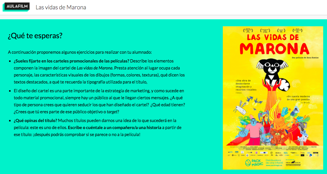 En este enlace encontrarás actividades para realizar con tu alumnado antes y después de ver la película Las vidas de Marona