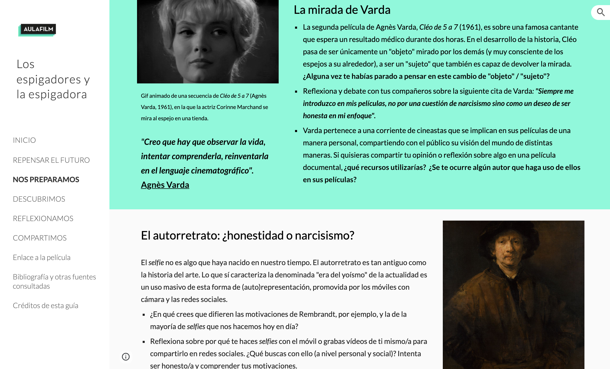 Esta guía pedagógica ha sido elaborada en el marco del programa Repensar el futuro impulsado por la Red PLANEA de Arte y Escuela en Andalucía con Aulafilm. Se dirige a los niveles de ESO, Bachillerato y ciclos formativos con el fin de profundizar en la película Los espigadores y la espigadora de Agnès Varda desde varios ángulos.