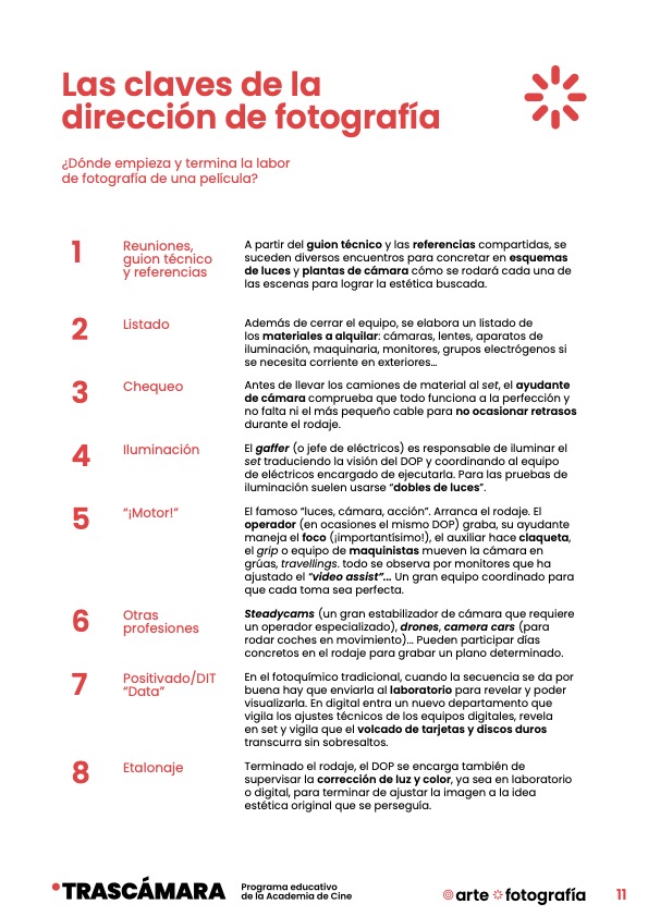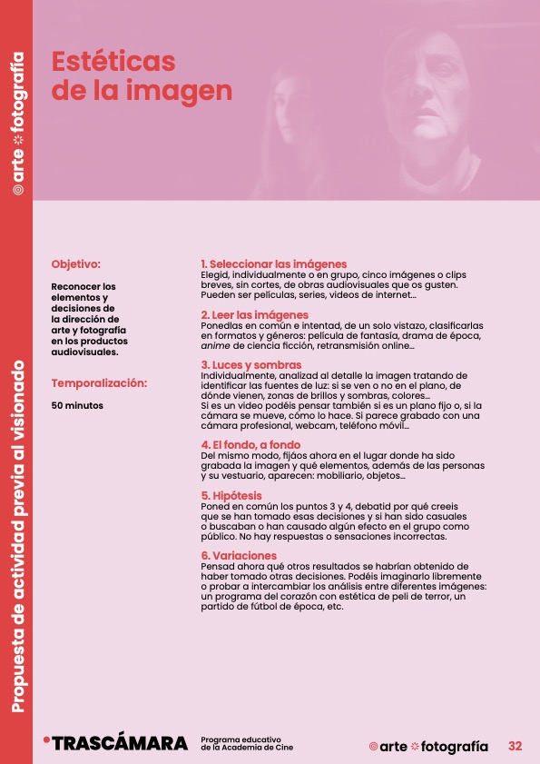 Es un material didáctico publicado por TRASCÁMARA, el Programa educativo de la Academia de Cine, desarrollado en conjunto con Aulafilm.