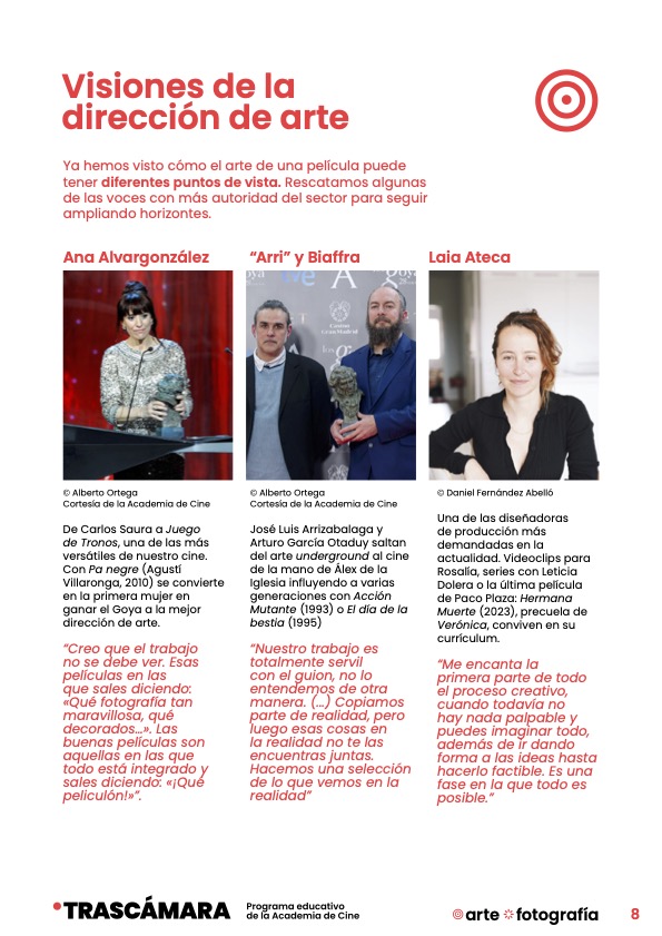 Trascámara, el programa educativo de la Academia de Cine busca acercar a la juventud el cine como arte colectivo y despertar el interés por los oficios y las artes que intervienen en su creación, así como facilitar a la comunidad educativa un contacto directo con el talento de los equipos técnicos y artísticos del cine español.