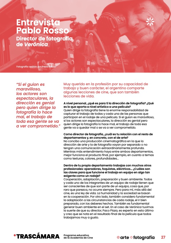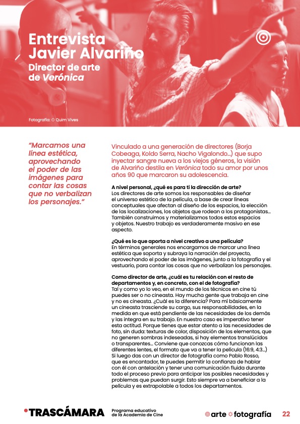 Descargar archivoGuía pedagógica del programa eduativo Trascámara sobre los oficios de Dirección de Arte y Dirección de Fotografía. Película: Verónica. PDF (5,2 MB)