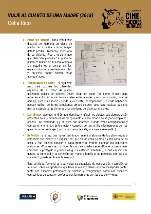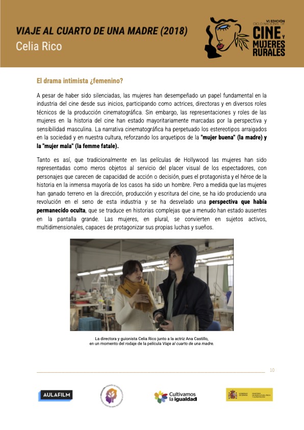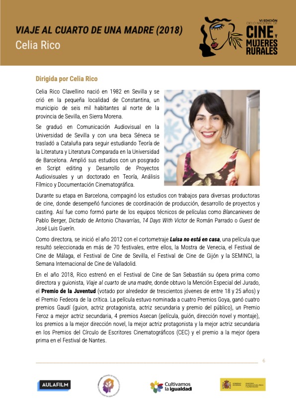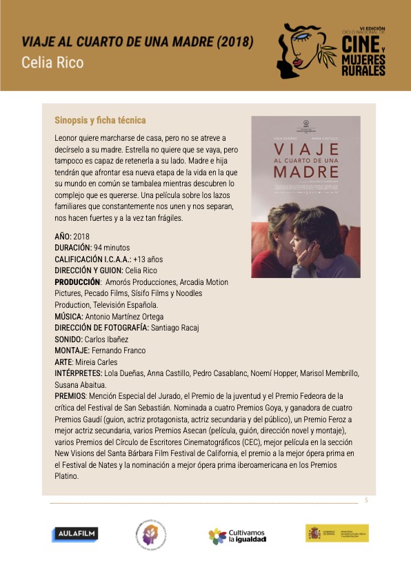 - Descubrir uno de los títulos imprescindibles del cine español de esta última década y conocer las señas de identidad de su directora, Celia Rico, quien con Viaje al cuarto de una madre reflexiona sobre las relaciones madre-hija y el delicado momento de la emancipación de las personas jóvenes.