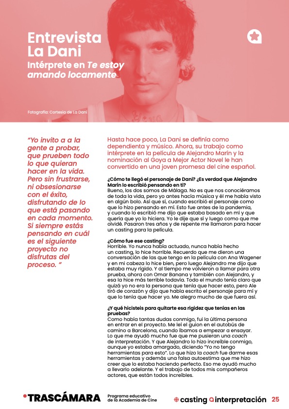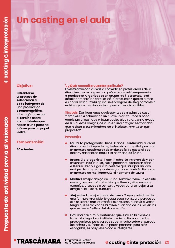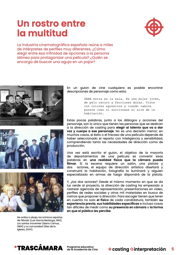 Es un material didáctico publicado por TRASCÁMARA, el Programa educativo de la Academia de Cine, desarrollado en conjunto con Aulafilm.
