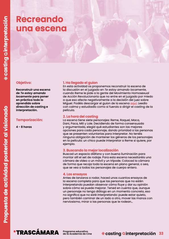 Te estoy amando locamente: guía didáctica Dirección de Casting e Interpretación