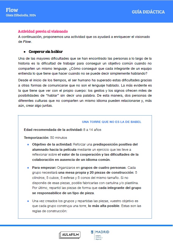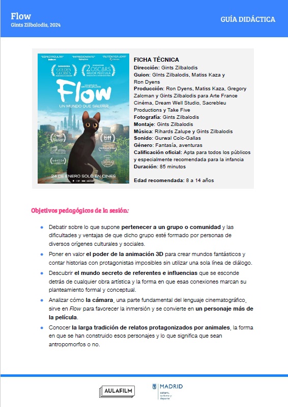 Esta guía didáctica, pensada para estudiantes de 8 a 14 años, fue diseñada en el marco del programa de Cineclubs Aulafilm de la ciudad de Madrid.