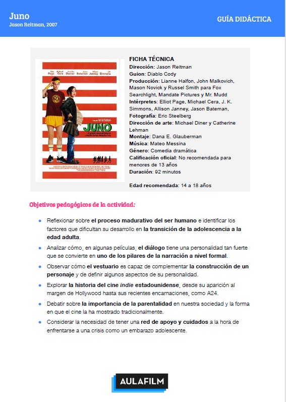 A través de esta guía didáctica, pensada para estudiantes a partir de 14 años, el equipo de Aulafilm acompaña al profesorado para que pueda trabajar una serie de objetivos pedagógicos en el aula:
