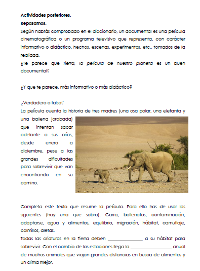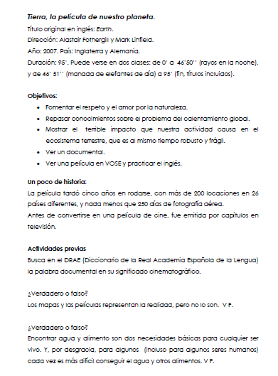 Esta guía dirigida al alumnado de 5º y 6º de Primaria sobre la película Tierra permite abordar la cuestión del ecologismo de un modo educativo y lúdico.