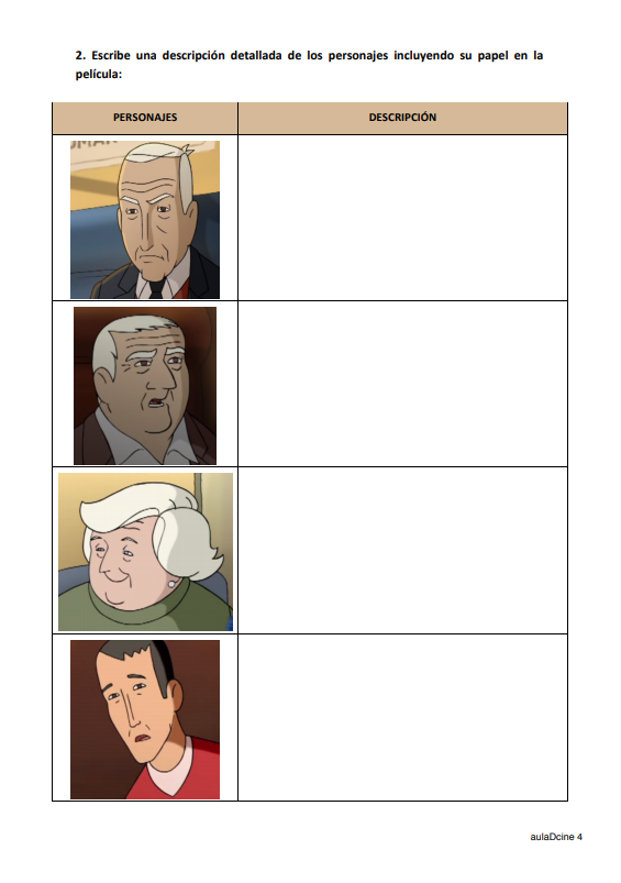 - Descifrar la personalidad de los diferentes personajes de la película.