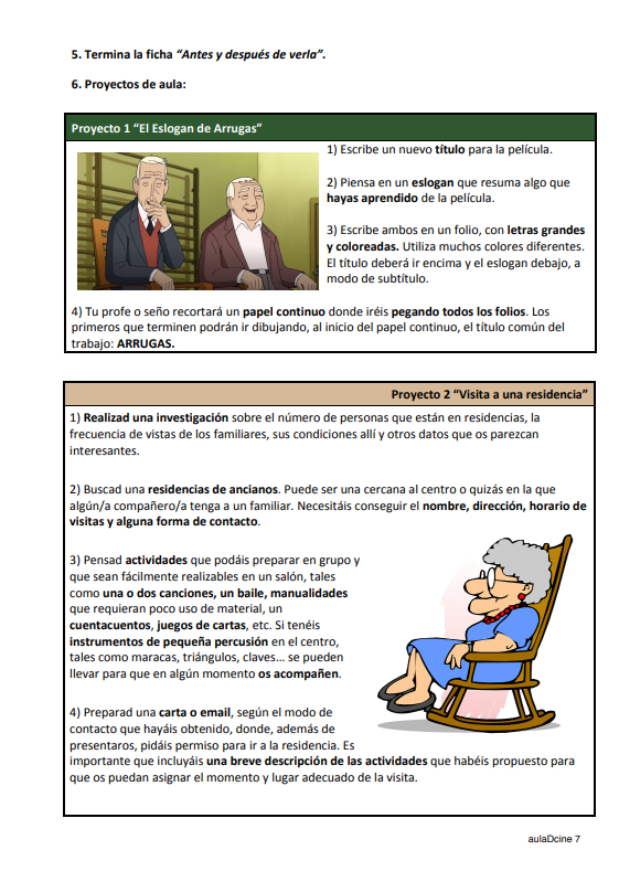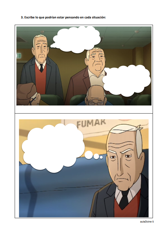 - Desarrollar aptitudes narrativas: Imaginar pensamientos de los personajes para determinadas escenas de Arrugas.